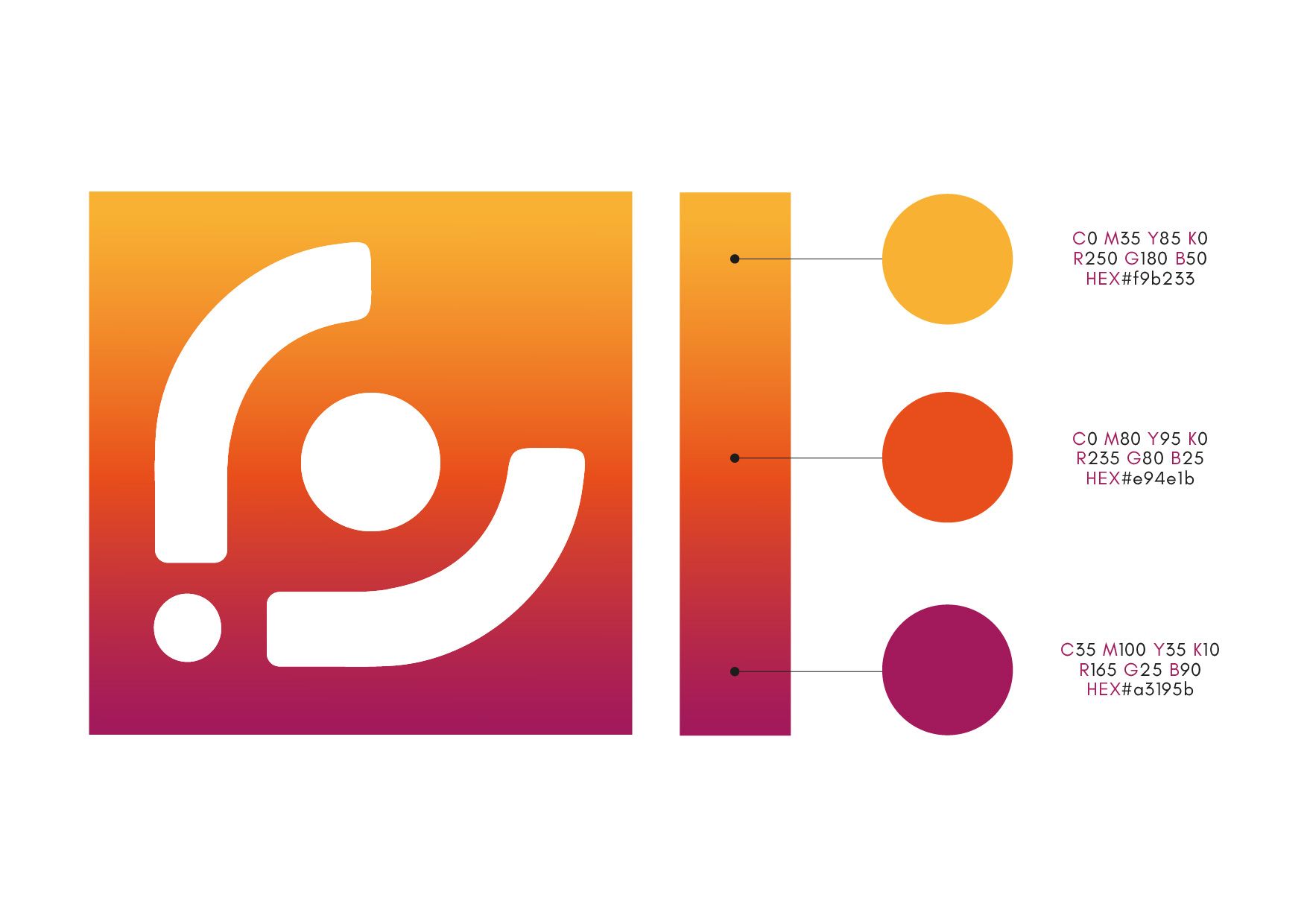 The gradient of the logo starts from a purple, placed at the bottom, up to a warm ochre at the top. The colors are vital, bright, communicate strength and familiarity, surpassing the perhaps rigid and institutional aspect that the place could give to the youngest. In this sense, it is proposed precisely to attract the attention of students, changing its approach into soft and welcoming shapes, which the color follows accentuating its liveliness.