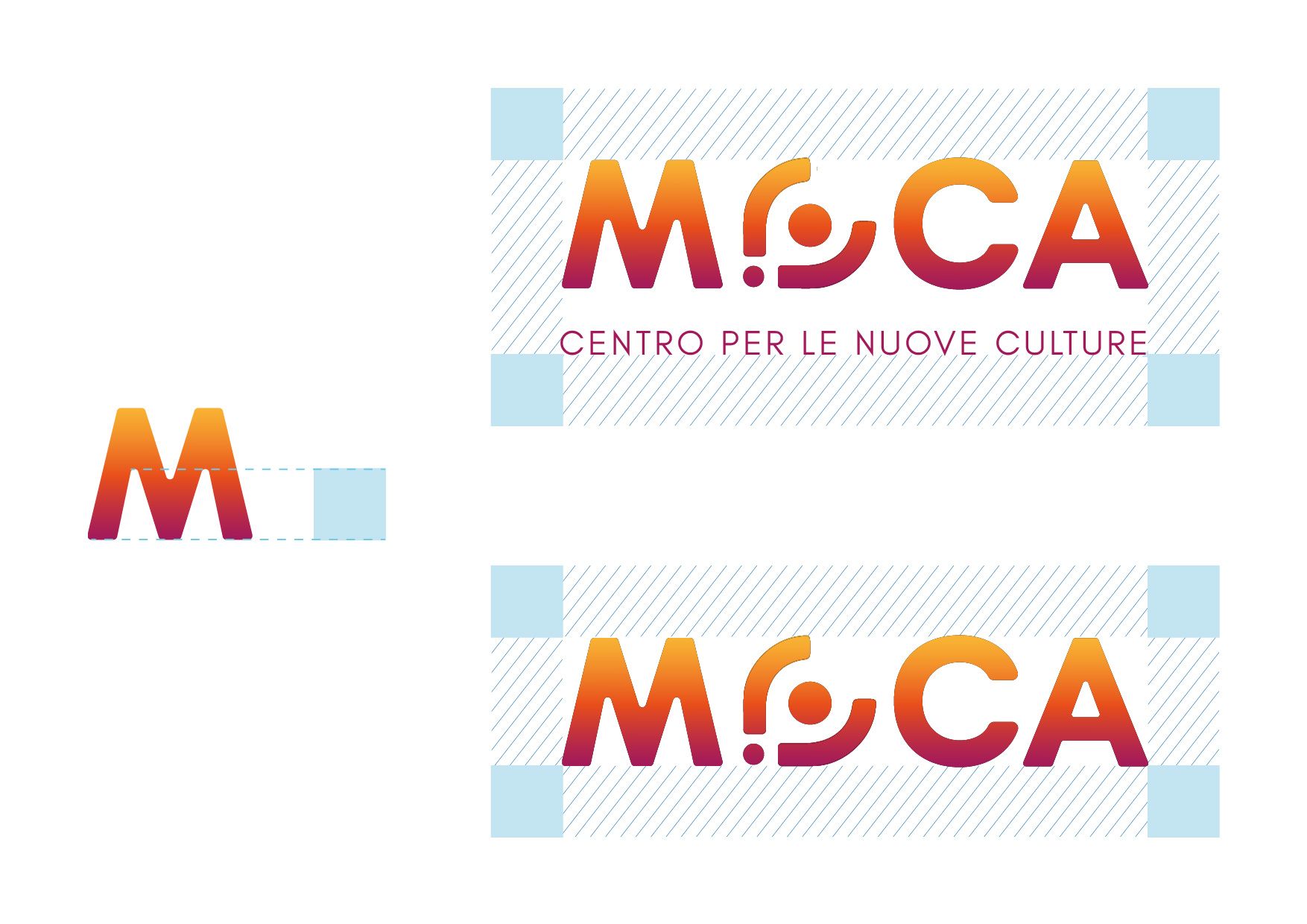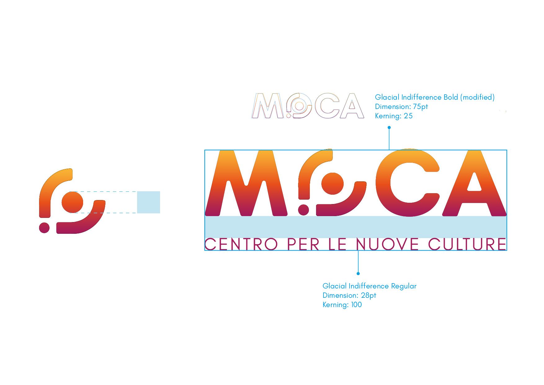 The font used in the logotype is Glacial Indifference Bold, but slightly beveled at the corners to obtain a more harmonious and complementary shape with the pictogram. Below, the pay-off Centro per le nuove culture is always written in Glacial Indifference, but in this case Regular and with a kerning of 100.