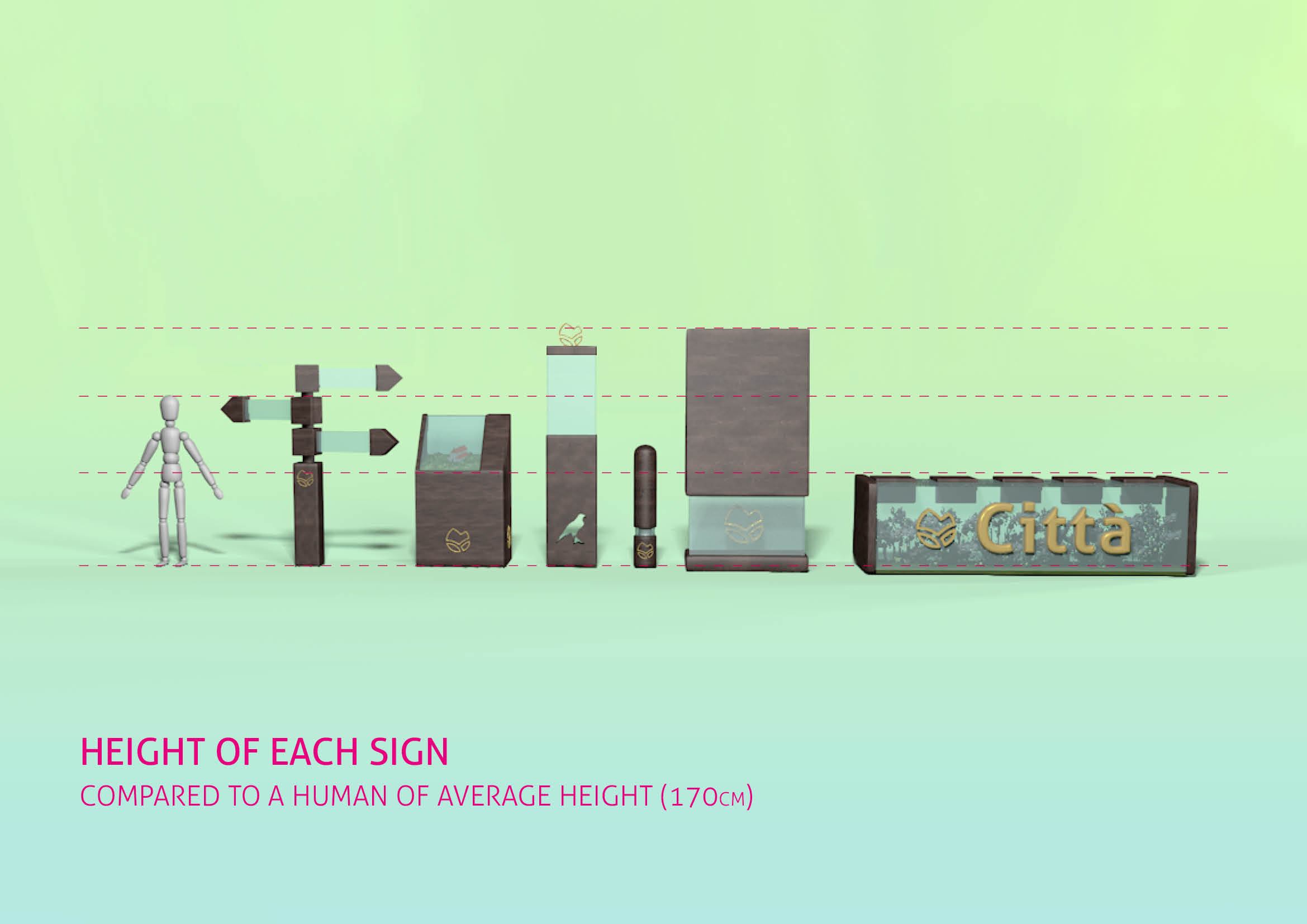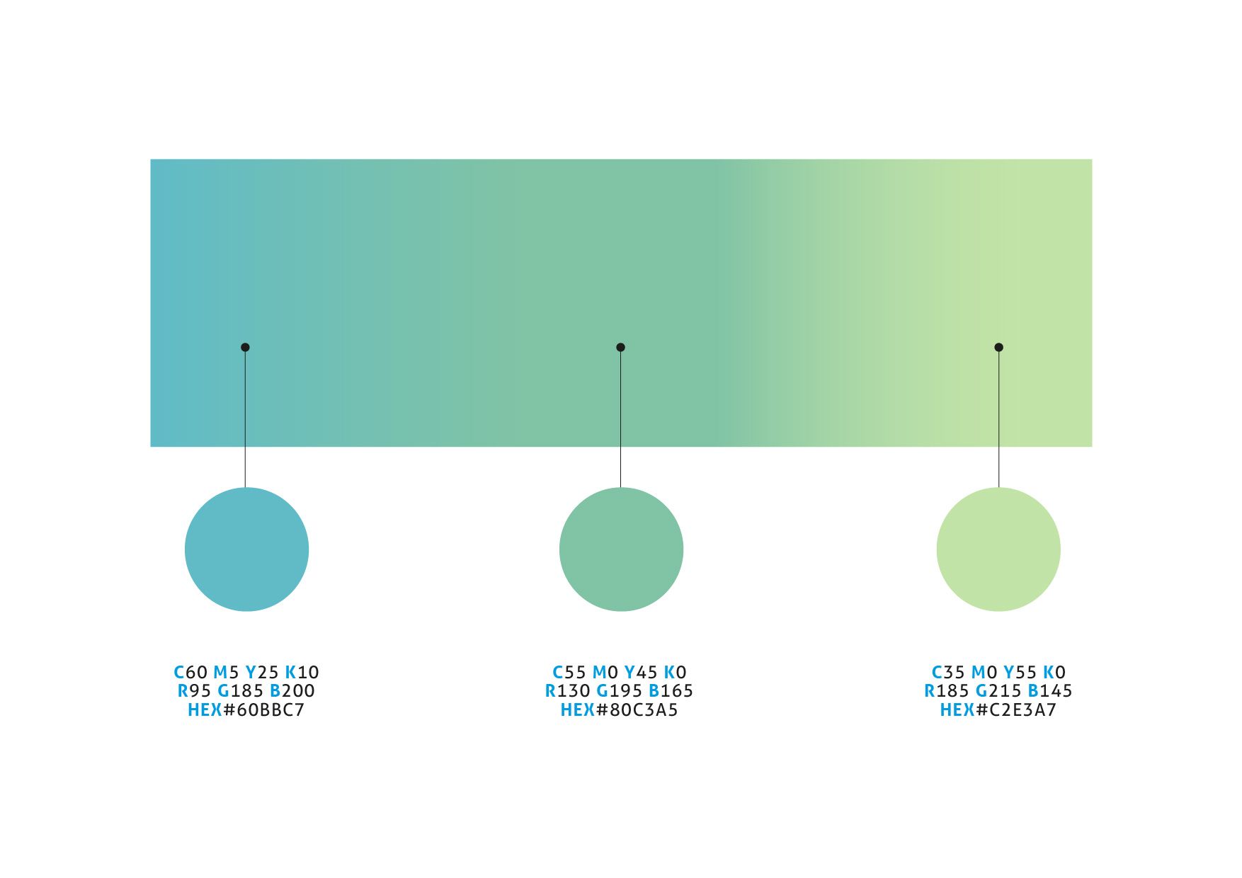From the three shades of the pictogram’s gradient can be drawn three variations of the logo itself. These variants can be used in the future for the purpose of differentiating between routes (using each for a different route) or depending on the medium (one for signage, one for the web and one for the production of printed material).