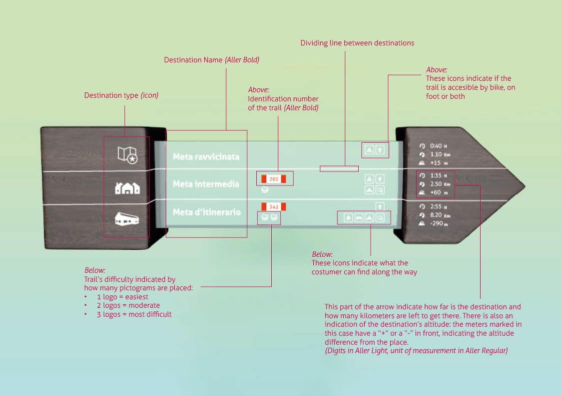The naming emphasizes the spiritual and relaxing aspect of the paths. It’s detached from a concept of a place because it proposes itself with the transversal spirit of being an “experience”: it’s the very experience of the journey, of the calm and introspection that it brings, the reason to push the target to undertake these routes. Furthermore, it’s also easy to memorize since it’s shorter than the previous naming and based on a wordplay: Meditavie, translated in italian, sounds like a combination between the words meditation (meditazione) and paths (vie).